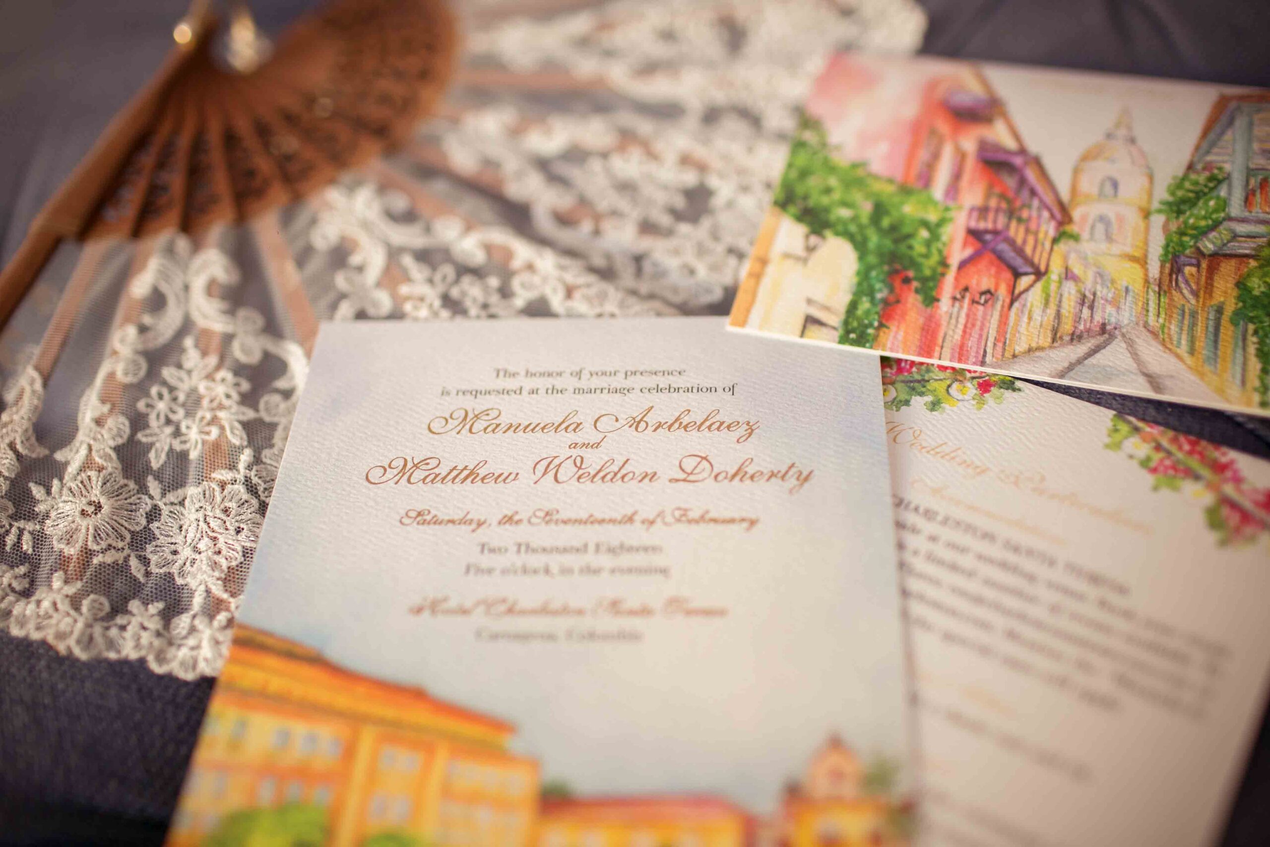 Watercolor Cartagena Wedding Invitation at Hotel Charleston Santa Teresa