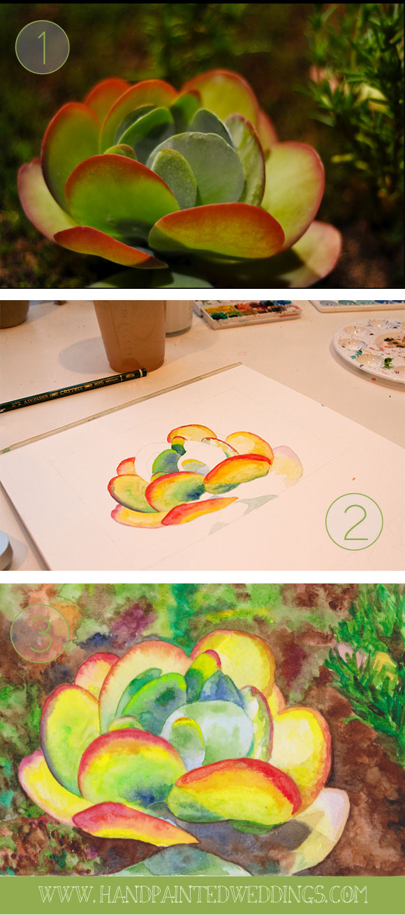 Succulents have been on my wish list to paint for awhile. I just might end up doing a succulent wedding invitation in the near future!