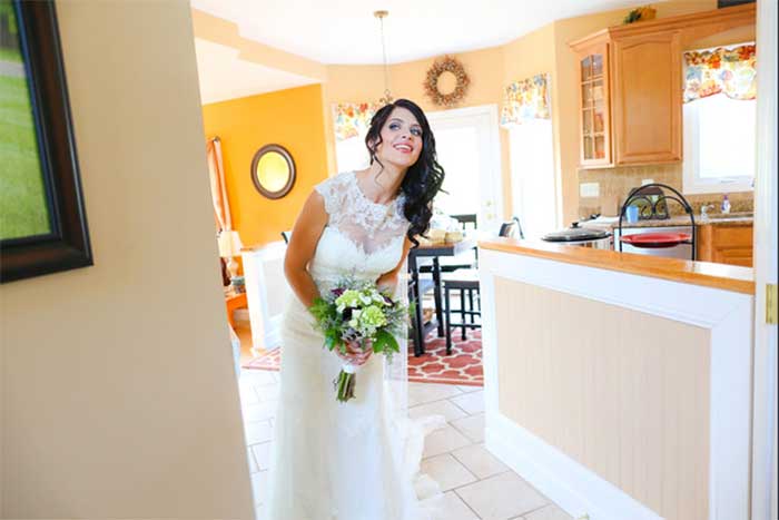 Laura: “My favorite detail was MY DRESS! I knew exactly what I wanted before I started shopping for dresses and it may sound a little old fashioned but I wanted an A-line silhouette with a lace covering up to the top of my neck, with lace cap sleeves and an open lace back. I know, sounds like a lot of lace, but it was so beautiful. It was important to me to feel like I projected an image of sweetness to really capture the feeling of a sweet, pure love that I have for my now hubby. Eeek- hubby- love being able to say that!”
