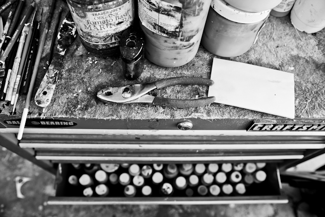 In the Make blog is quickly becoming one of my favorite blogs. For one, the concept is beautiful….capturing and cherishing the spirit of the artist, their art, and their studio space in a absolutely stunning way. The photographs are honestly my favorite part. The artists behind this blog photograph very candid, authentic glimpses of these artist’s spaces. Above are a few photos of artist’s tools, which are beautifully messy yet perfect. I’d highly recommend checking out this blog this weekend. The photographs of the artists and their art are not to be missed!