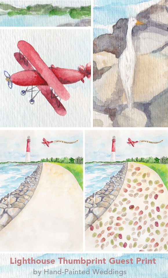 The Lighthouse Thumbprint Guestbook is available in the Hand-Painted Weddings Thumbprint Guestbook shop.