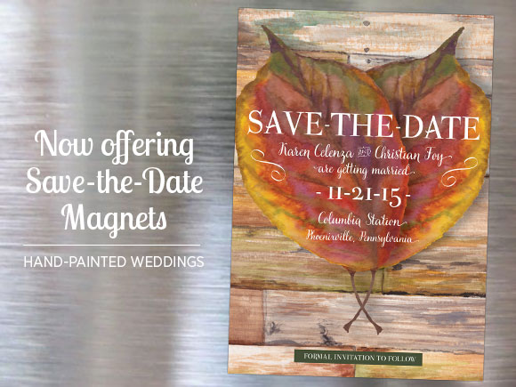 Hand-Painted Weddings is now offering watercolor Save-the-Date magnets! Save-the-Date magnets are fantastic because they don’t get lost (well, unless you have a lot of refrigerator magnets). The other fun thing I’ve noticed about Save-the-Date magnets is that they tend to stay on people’s refrigerators long after the wedding because they are pretty and decorative!