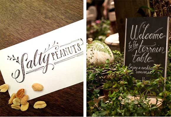 There is something so beautiful about hand-written type, when done well. It really is a talent. Hand-painted lettering is a skill I’m dabbling in currently because it will take my invitation designs to a new hand-painted level. As you can see above, the type of hand-written type I’m especially attracted to is script (or cursive). It has a loose flow to it which is so gorgeous!