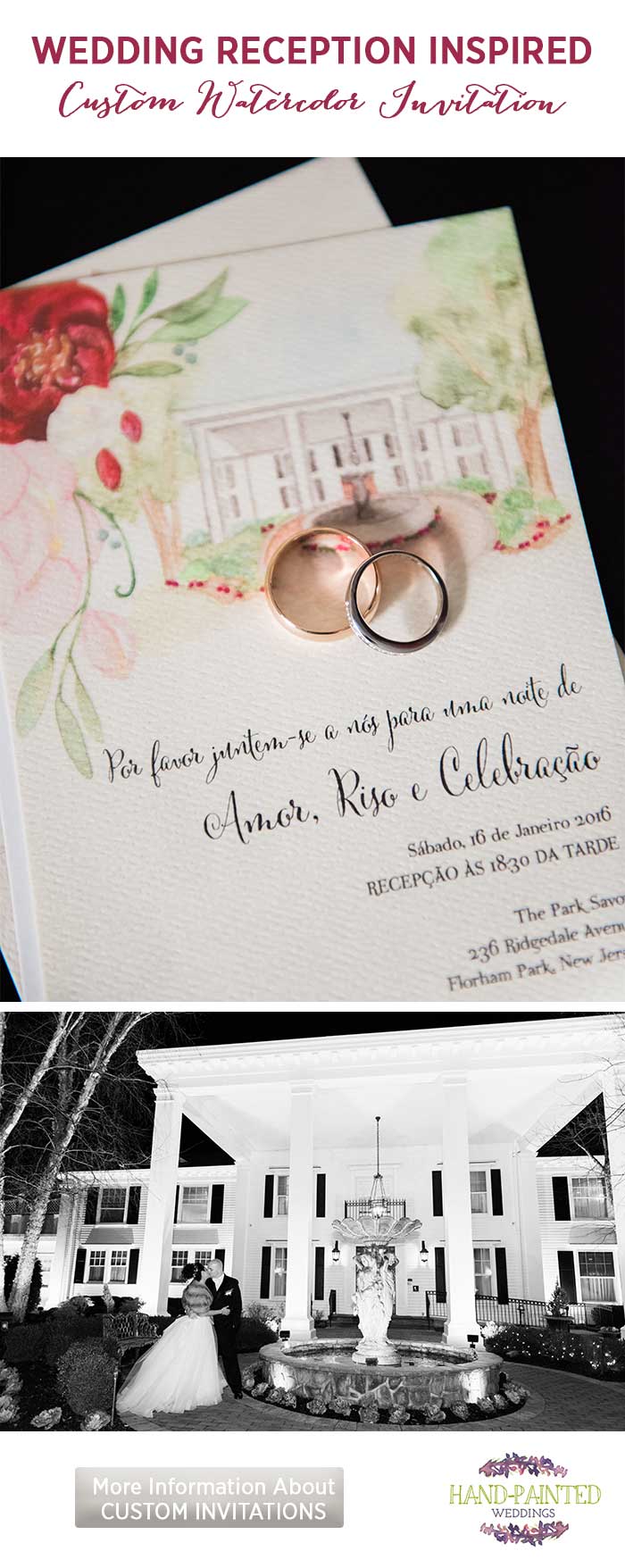 I really enjoyed working with the bride to paint their wedding invitation based on beauty of the ceremony and reception site, Stone Gardens. I worked from photographs of the location and created the pretty designs below.