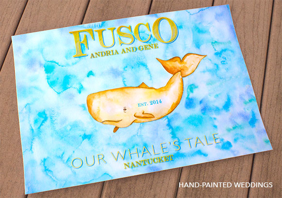 Our Whale’s Tale guest print certainly tops the most creative requests I have received from a bride. Andria and Gene got married earlier this summer in beautiful Nantucket. The vision for this print is for guests to place their thumbprints in the water surrounding the whale. I love when couples have unique ideas on ways to personalize their weddings! This custom Whale’s Tale guest print is sure to be a keepsake for years to come, and that really warms my heart!