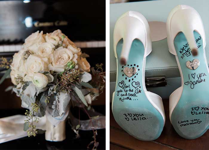 Maria and I decided to showcase the wedding venues front and center in the designs and then surround them with paintings of the lush, romantic flowers they had planned for the bouquets and floral arrangements. This added a gorgeous pop of color to the invitations for this winter wedding. To learn more about Custom Wedding Invitations, click here.