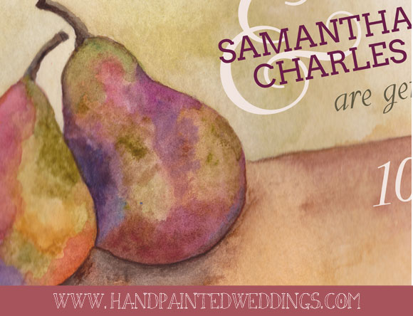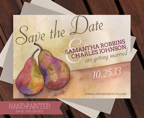The Seckel Pear Save-the-Date has a lovely vintage feel to it. It would be great for the couple who is having a lot of vintage elements in their wedding. I think this vintage aesthetic works wonderfully with an Autumn wedding. There is something so cozy and charming about it. Also pears are seasonally appropriate for a wedding during the fall.