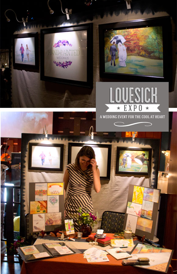 Lovesick Expo Philadelphia was everything I had hoped it would be and more! I loved meeting couples and hearing their feedback about my work and getting excited with them about the possibilities for their wedding day. I loved watching people “sign” the Cobblestone Thumbprint Guest print with their thumbs. I loved being side-by-side with other super nice talented wedding vendors. I adored getting to meet photographer Krista Leigh Hurst, who I recently worked on an exciting project on…more on that soon. It was so excited to meet the bride who won my veil giveaway a couple of weeks ago, and to catch up with Chrissy from Truly You Events, who I’m currently working with on an awesome backyard wedding invitation suite for a couple. I loved meeting the woman who won the Hand-Painted Cobblestone Thumbprint Guest Print, and seeing how excited she was to have won! I appreciate all the support from my family and friends, and particularly the man by my side always (and at this event), my husband, Carl! Ok, enough gushing! Here is a little recap (with pictures, descriptions below)!