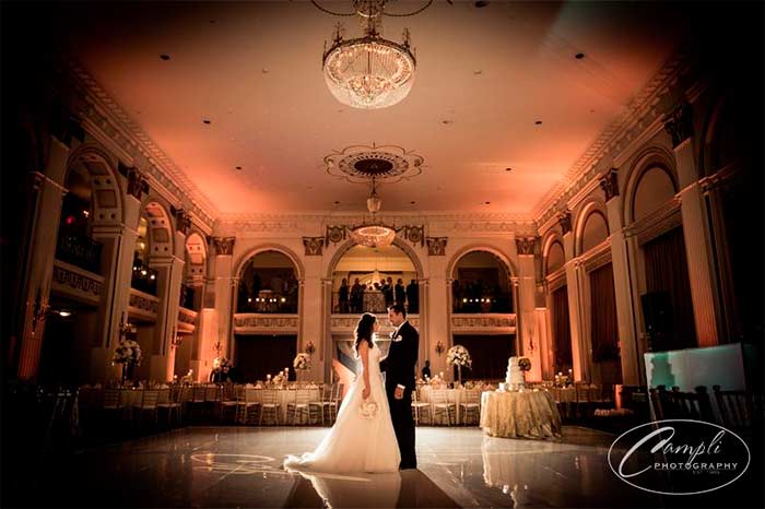 Maria and Licinio got married in a historical cathedral, and then celebrated at the stunning Park Savoy Estate in North Jersey this past winter. They decided to have a separate reception card in their invitation suite, which featured the exterior of this beautiful building along with the fountain and lush gardens adorning the entrance of the Park Savoy.
